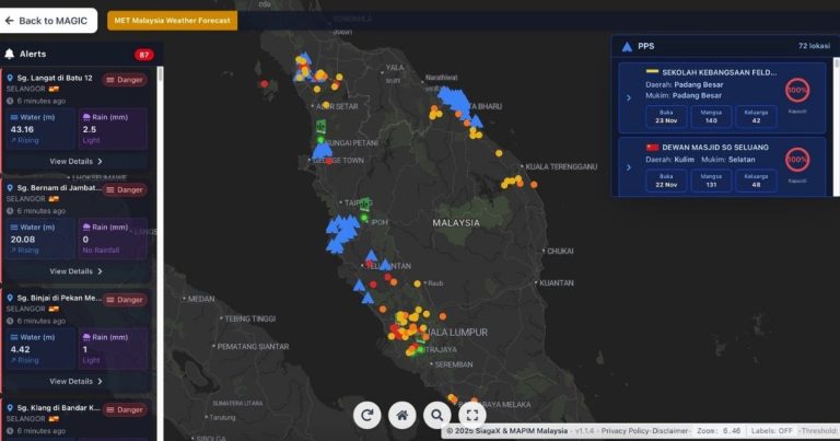 Pantau info banjir terkini di Malaysia melalui portal SiagaX Bencana yang memaparkan paras air, hujan, amaran dan lokasi PPS secara