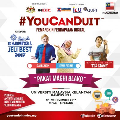 bertemu lagi di program #YOUCANDUIT, yang merangkumi program eRezeki dan eUsahawan bertujuan untuk memberi inspirasi kepada rakyat dengan keusahawanan digital dan menyediakan cara untuk mendapatkan sumber pendapatan alternatif serta mendidik rakyat tentang kepentingan ekonomi digital.
